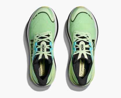 We threw out the rulebook when creating the Skyward X. Pushing soft and smooth to the extreme, this cushy new trainer features a revolutionary suspension system with a convex carbon fiber plate that allows the suspension system to compress and spring back with each step. A soft, highly resilient PEBA foam sits closest to the foot for a lively, cushioned ride, while a super critical EVA frame provides a stable base for your easiest miles yet.